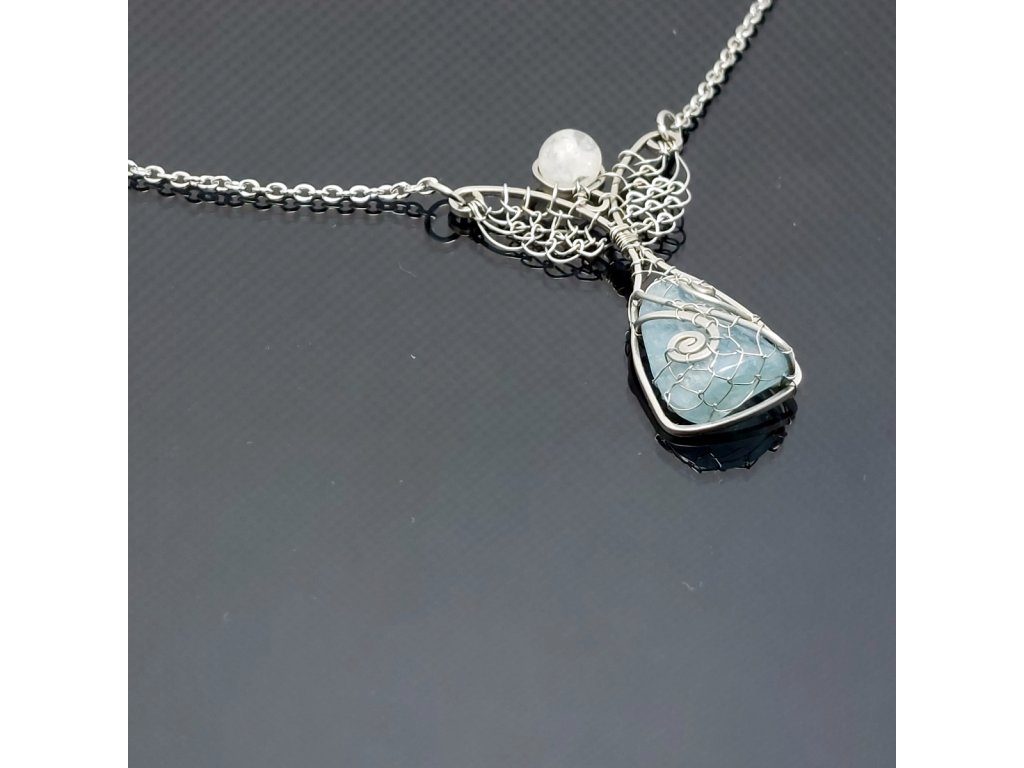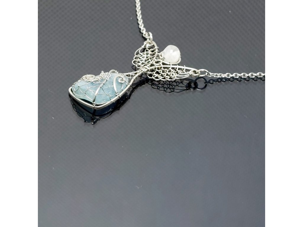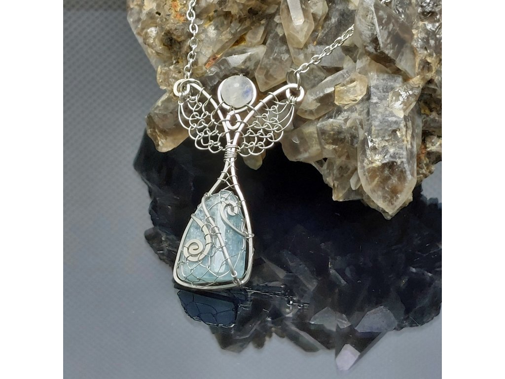 Originální pojetí oblíbeného motivu anděla s měsíčním kamenem (hlava) a akvamarínem (tělo).