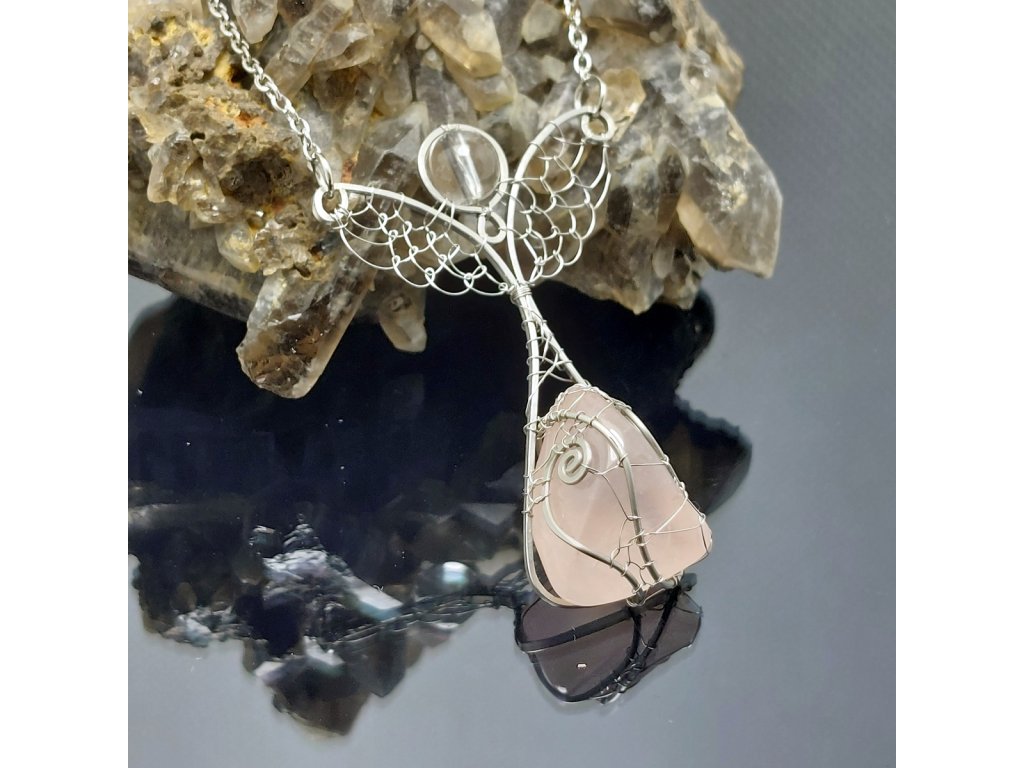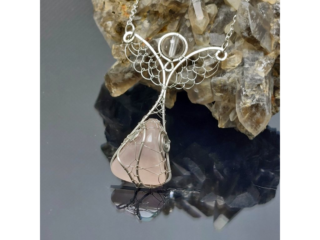 Originální pojetí oblíbeného motivu anděla s křišťálem (hlava) a růženínem (tělo).