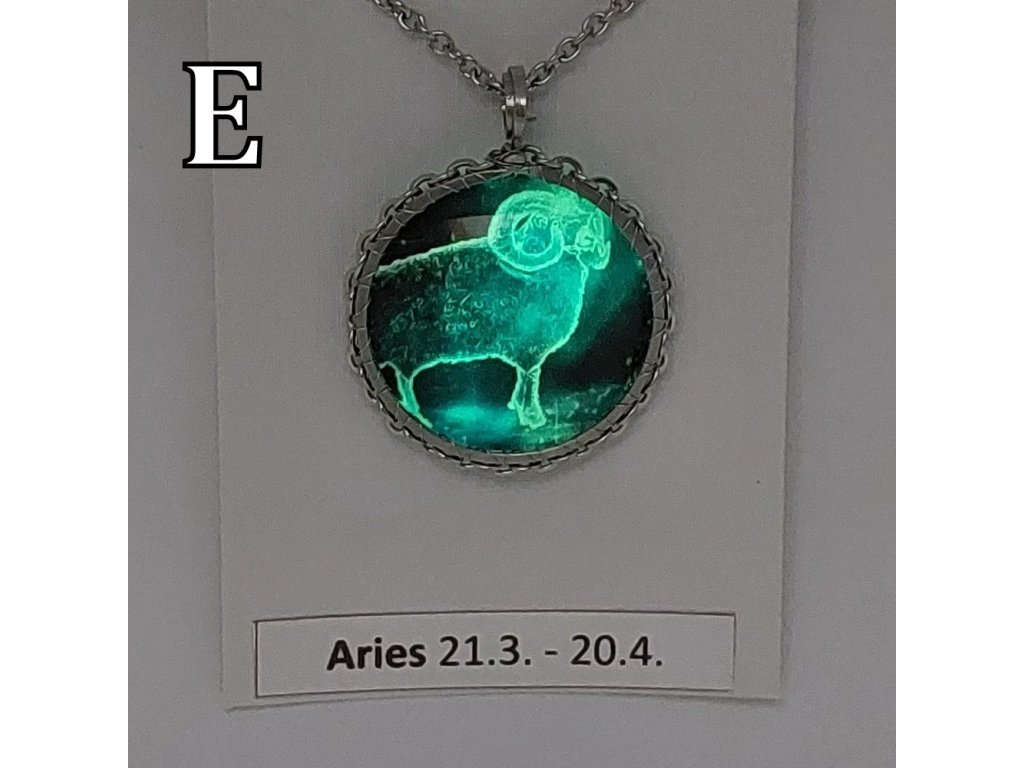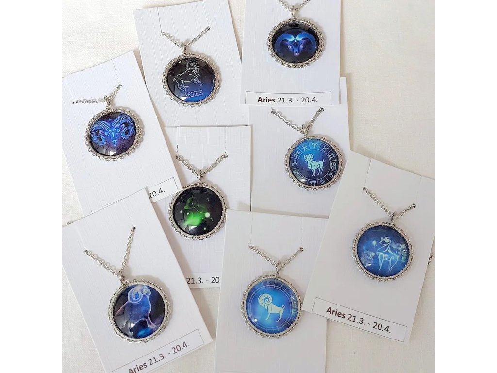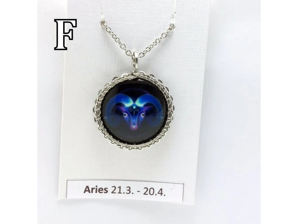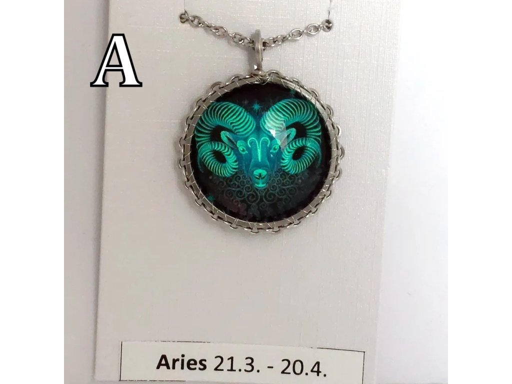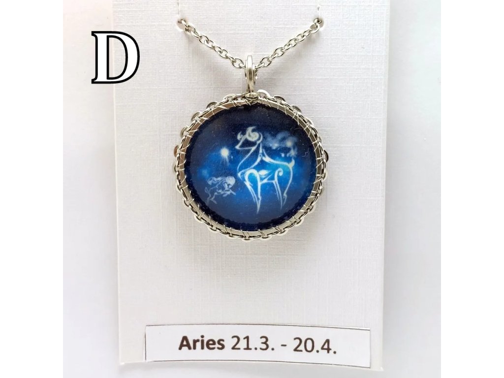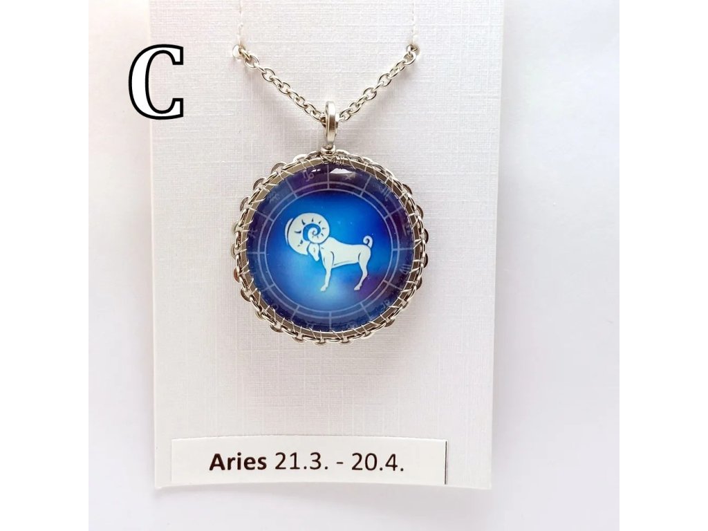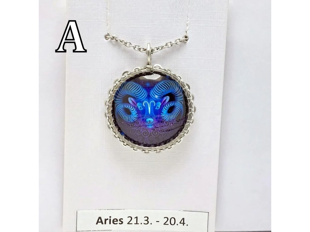 Unisex náhrdelník se zakomponovanou skleněnou čočkou ( průměr 2,5 cm) s motivem znamení Berana, zavěšený na řetízku (délka 50 cm, lze na požádání změnit)