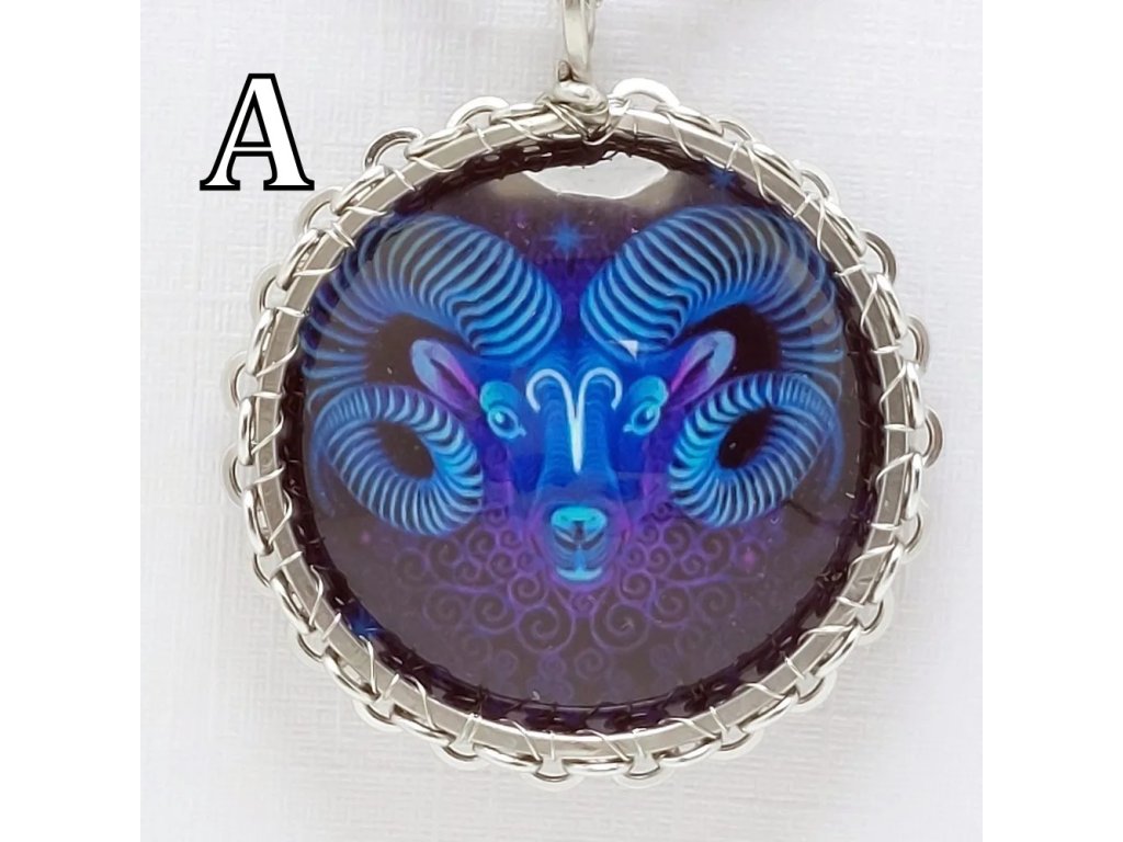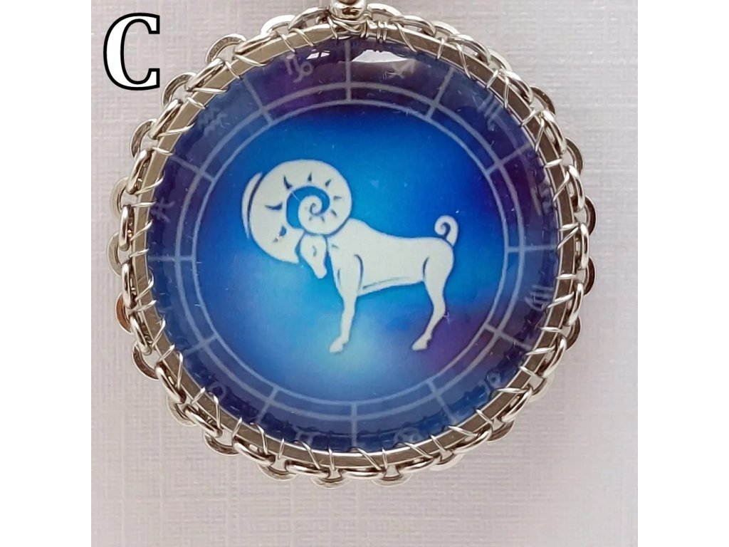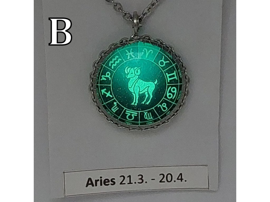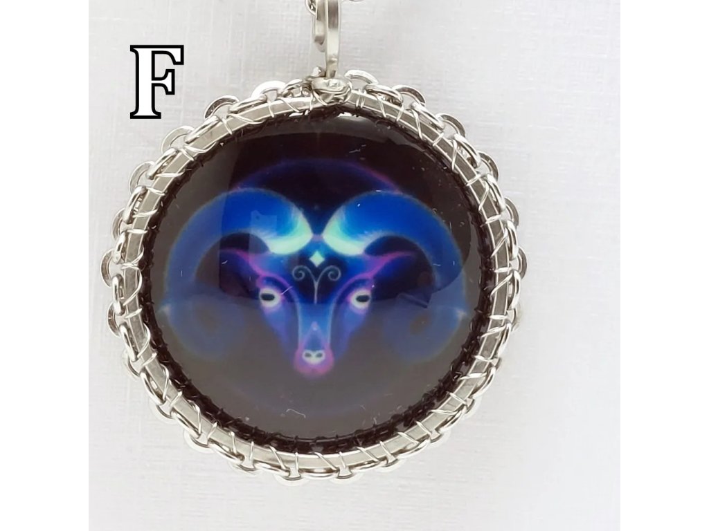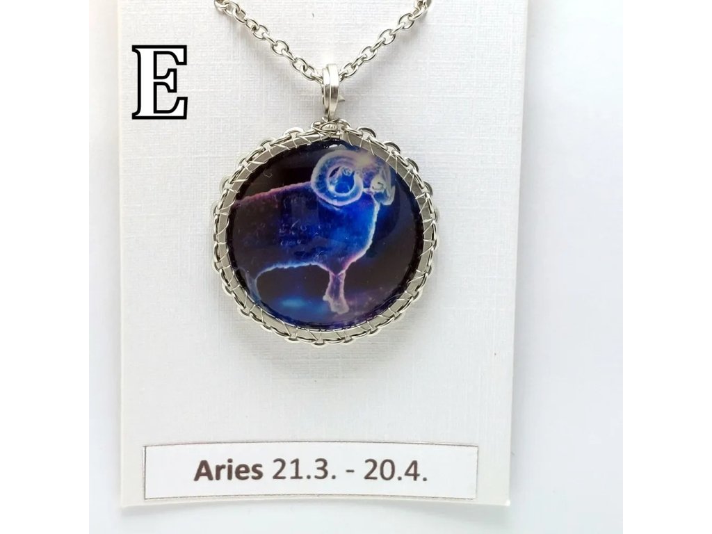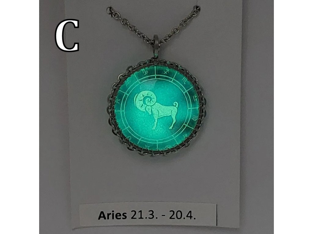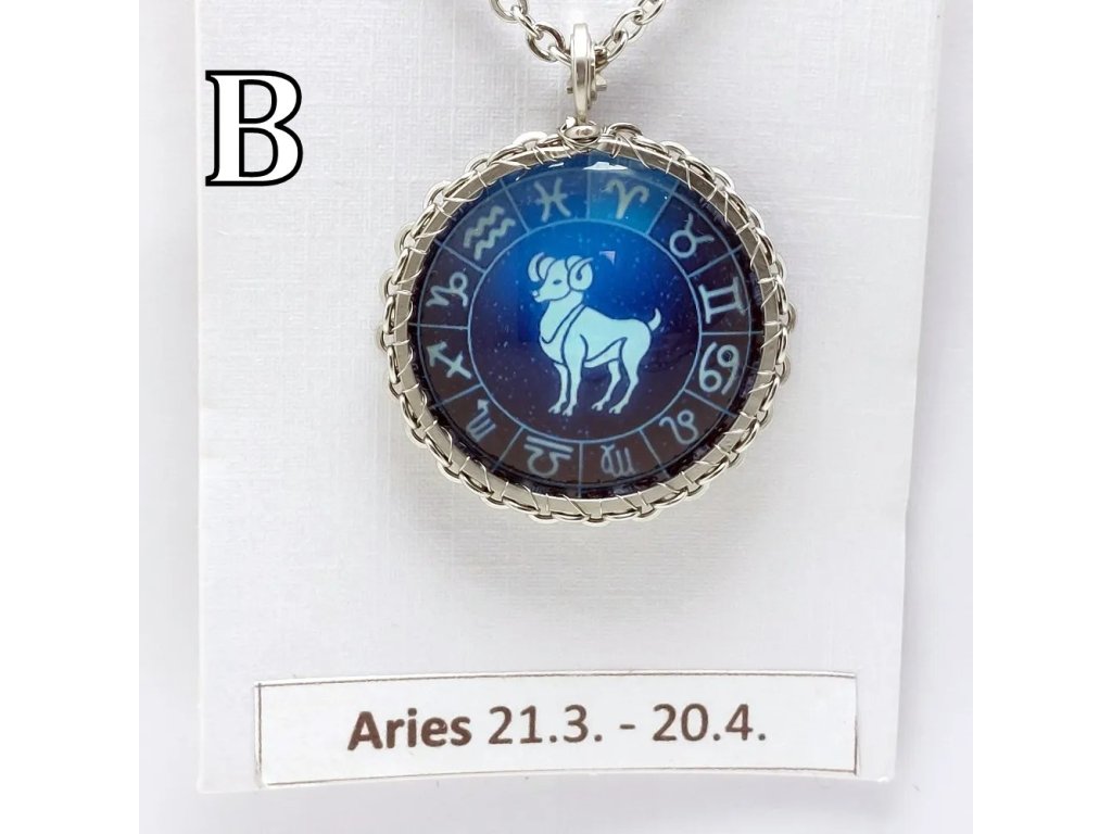 Unisex náhrdelník se zakomponovanou skleněnou čočkou ( průměr 2,5 cm) s motivem znamení Berana, zavěšený na řetízku (délka 50 cm, lze na požádání změnit)