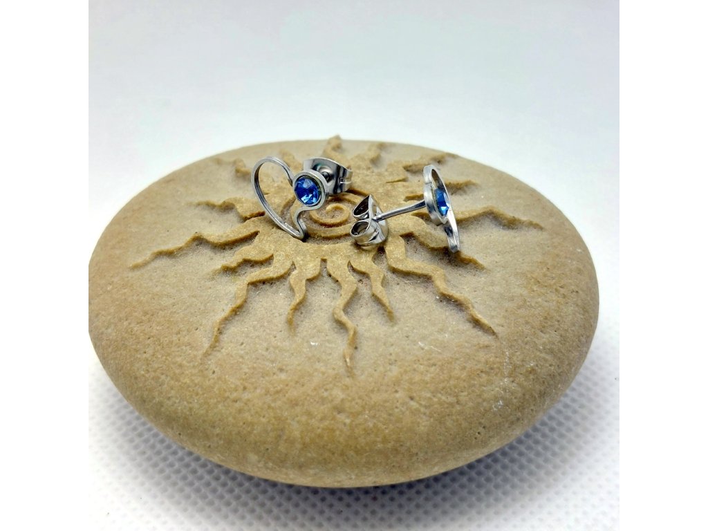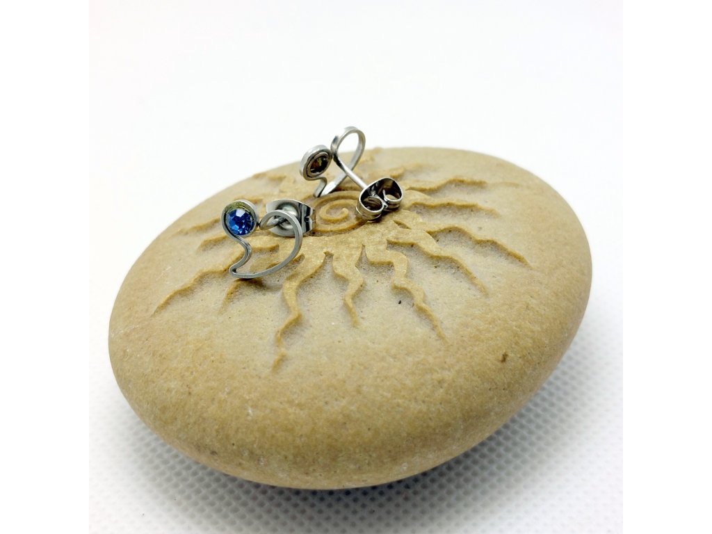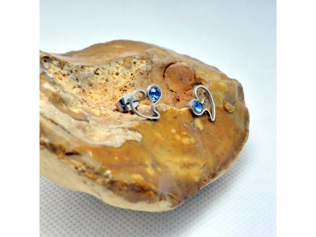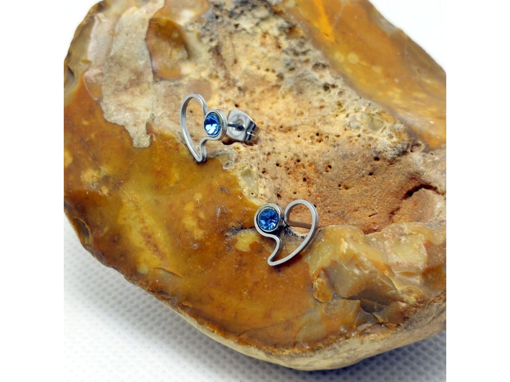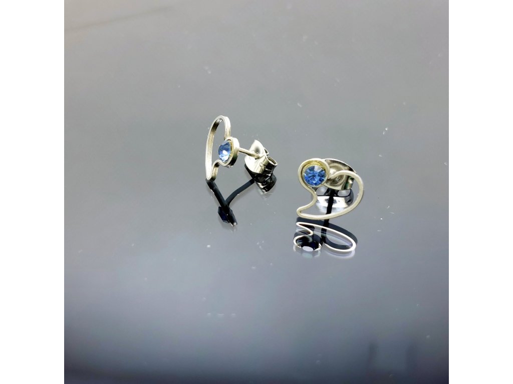 Drobné, něžné náušnice s ozdobené blankytně modrými kamínky swarovski.