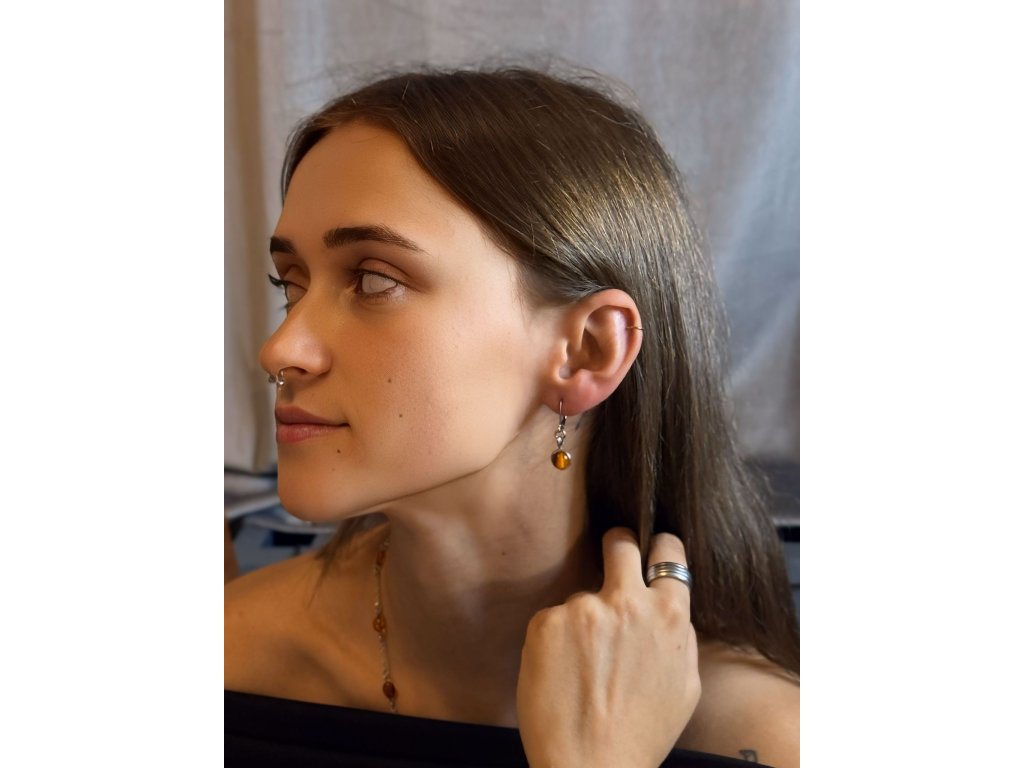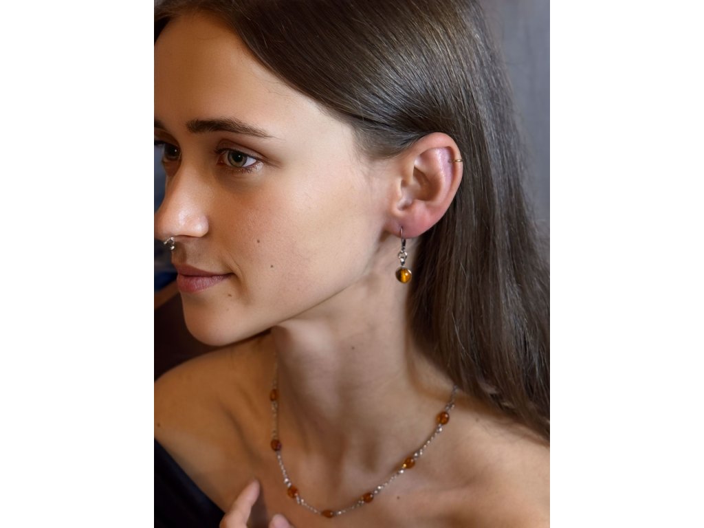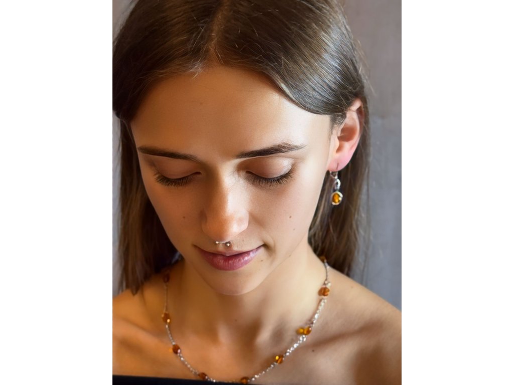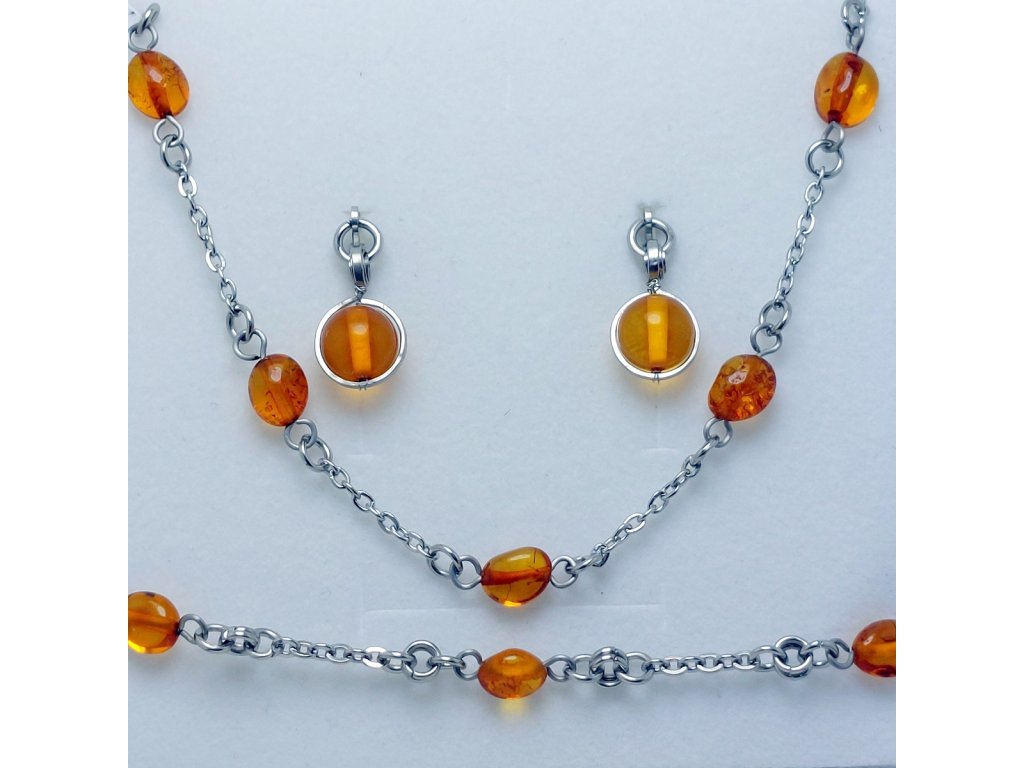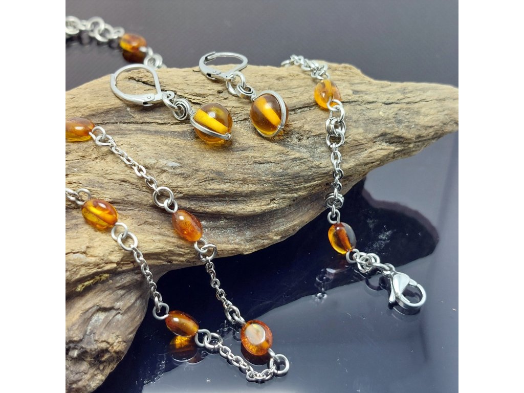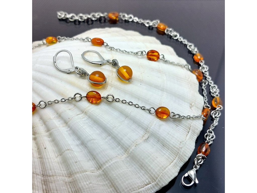 Souprava náhrdelníku, řetízku a náušnic, dokonalá ve své jednoduchosti. Tentokrát s krásnými hřejivými jantary.