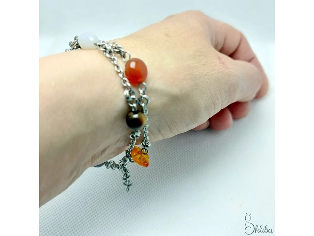 Uvedené fotky jsou ilustrační. Každý náramek je originál. Dodaný kus se může nepatrně lišit odstínem barvy, tvarem a velikostí kuliček/kamenů.