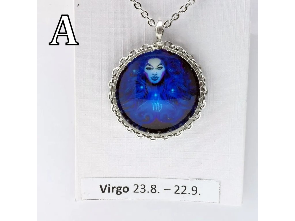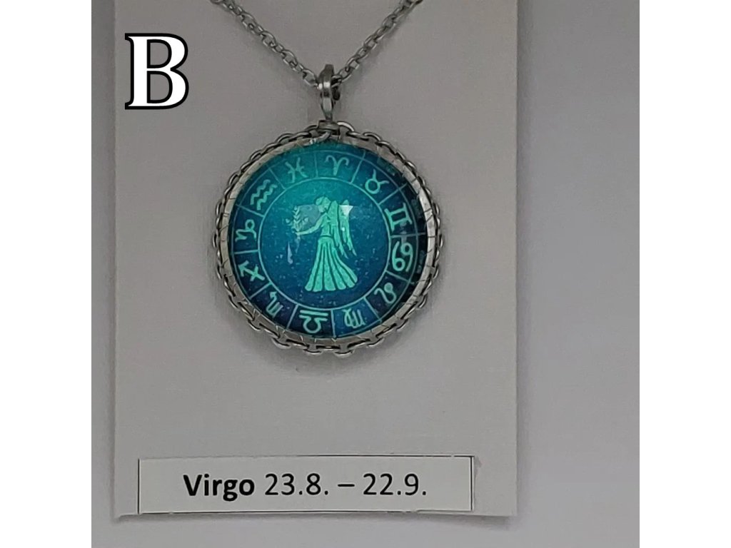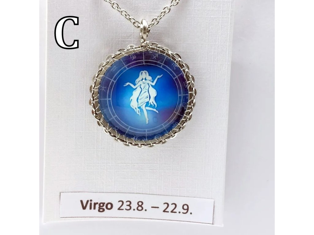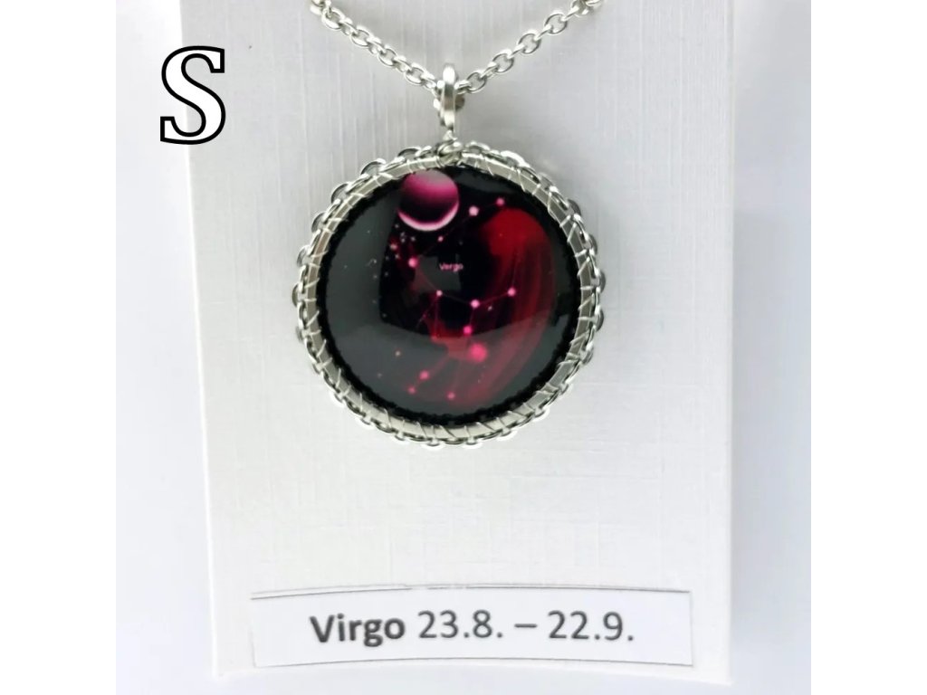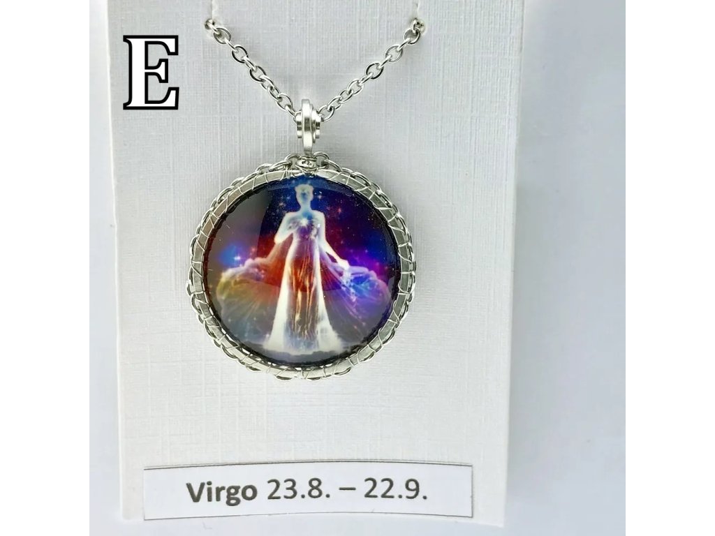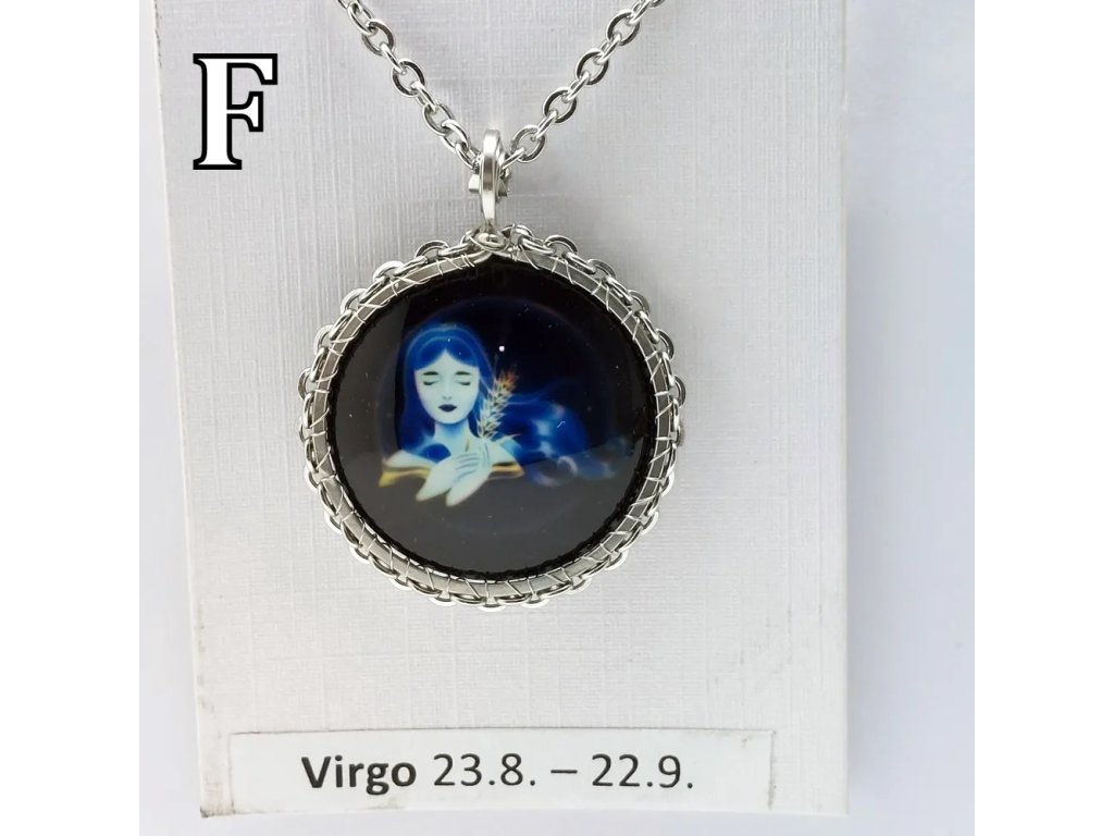 s motivem znamení Panny, zavěšený na řetízku (délka 50 cm, lze na požádání změnit).