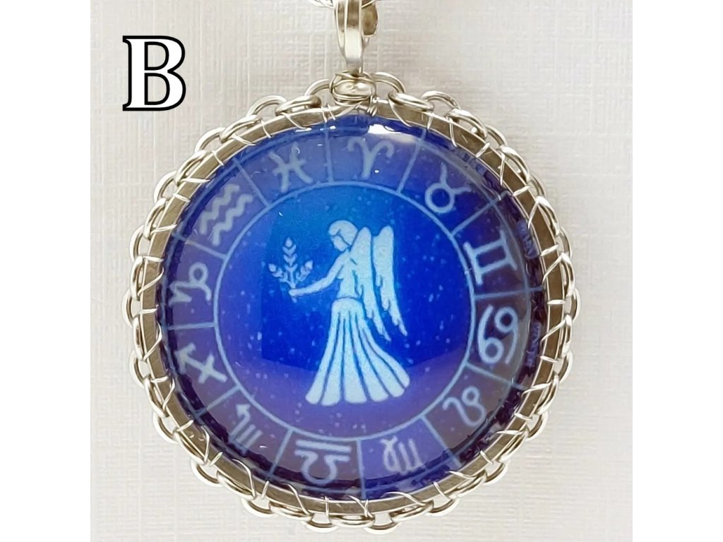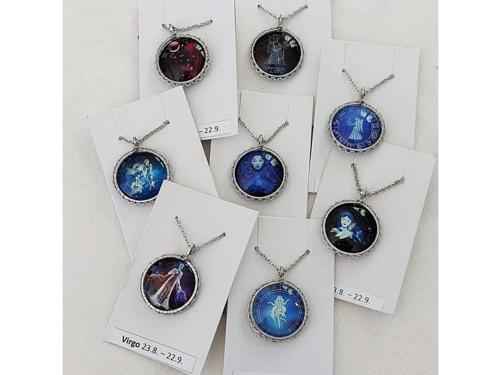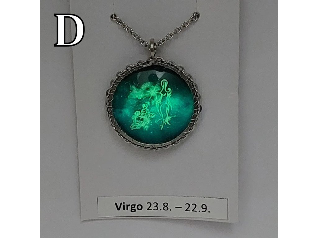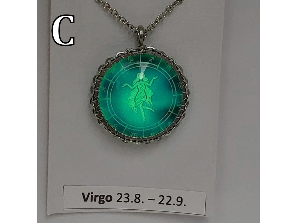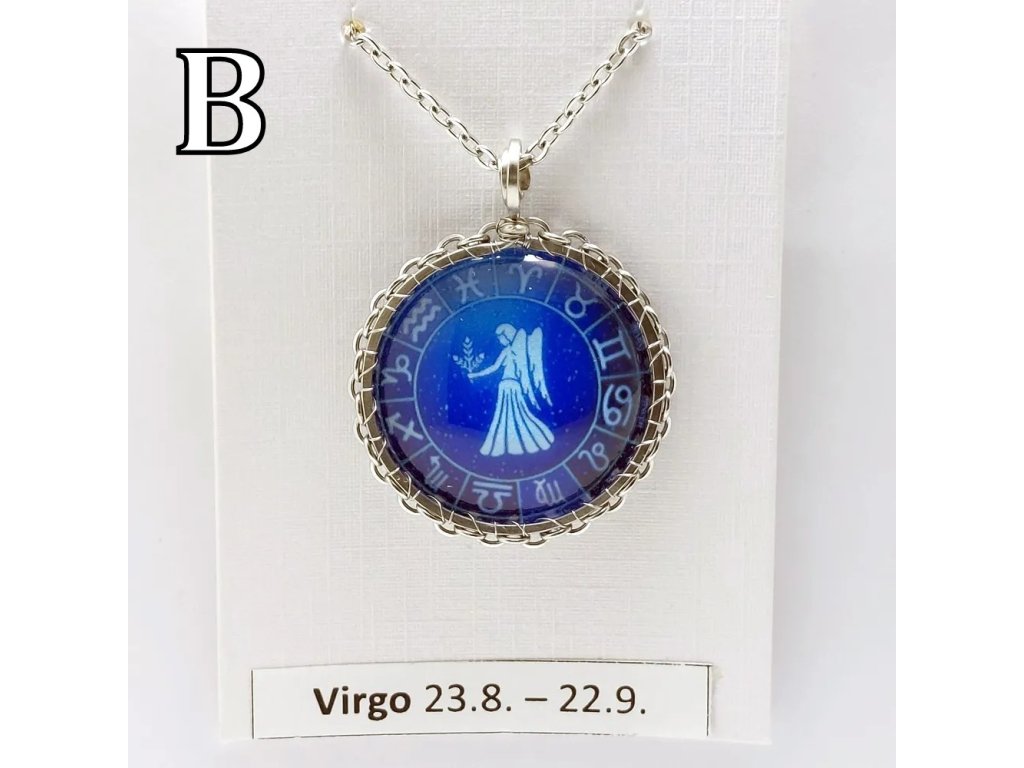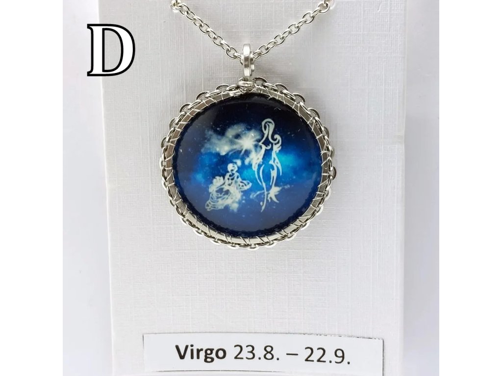 s motivem znamení Panny, zavěšený na řetízku (délka 50 cm, lze na požádání změnit).