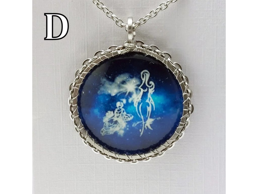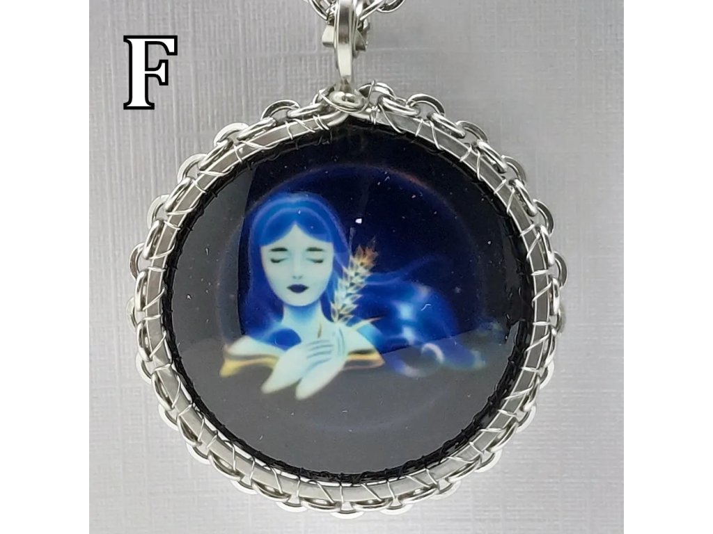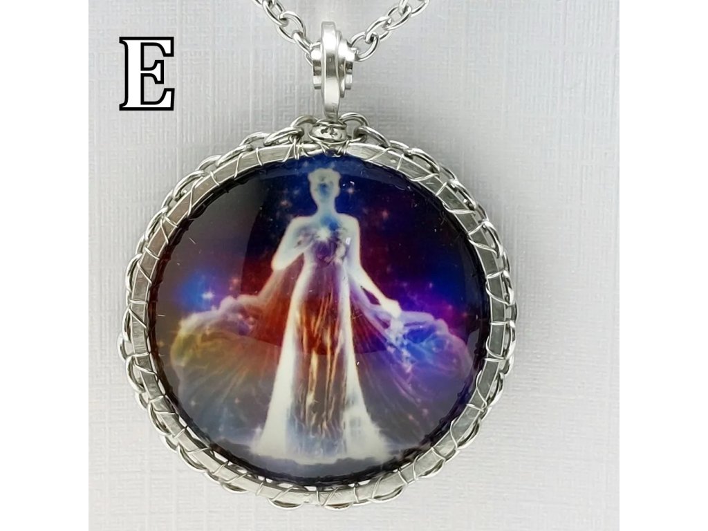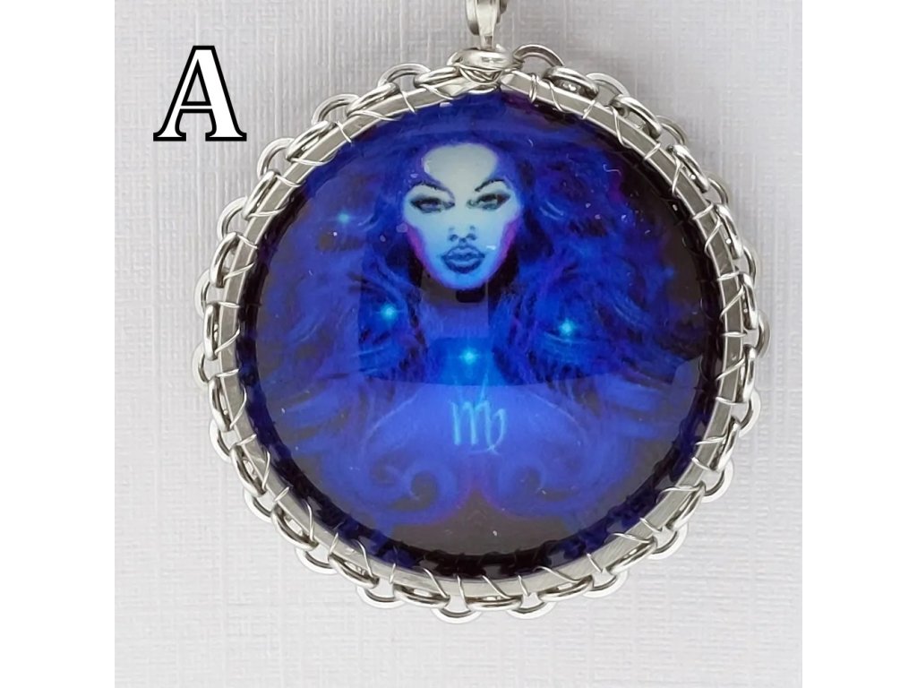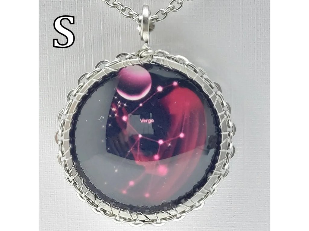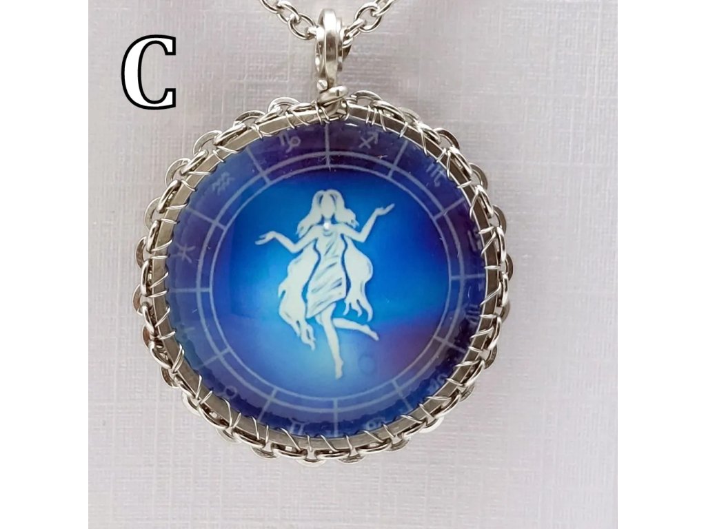 s motivem znamení Panny, zavěšený na řetízku (délka 50 cm, lze na požádání změnit).