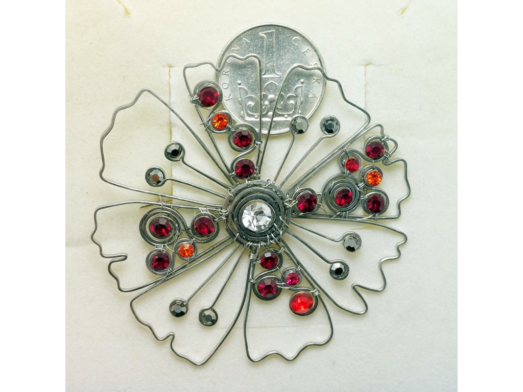 Originální elegantní brož ve tvaru květu zdobená kamínky swarovski