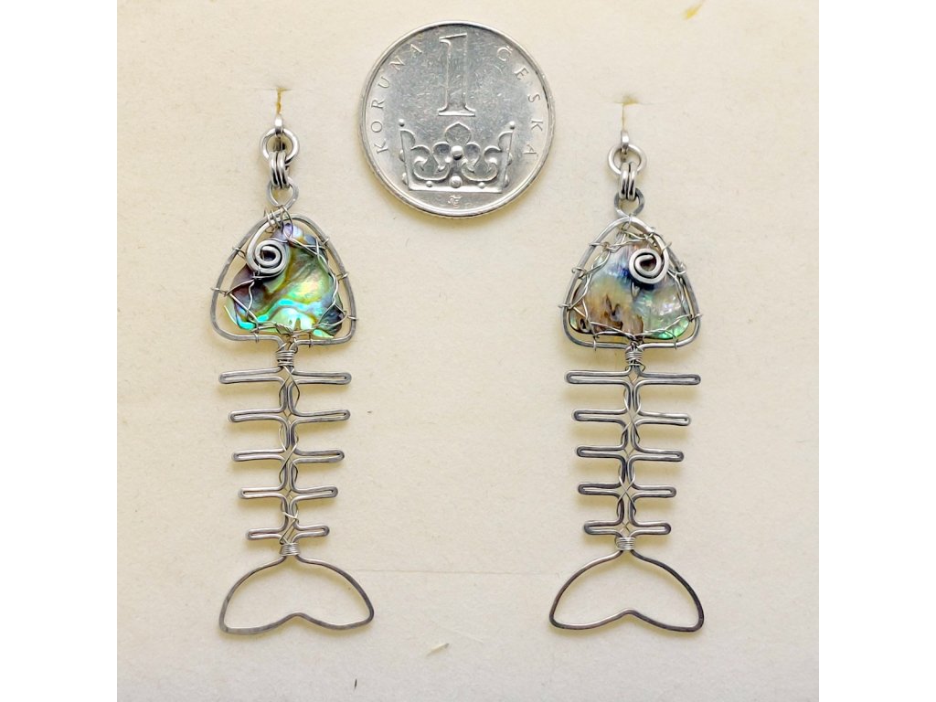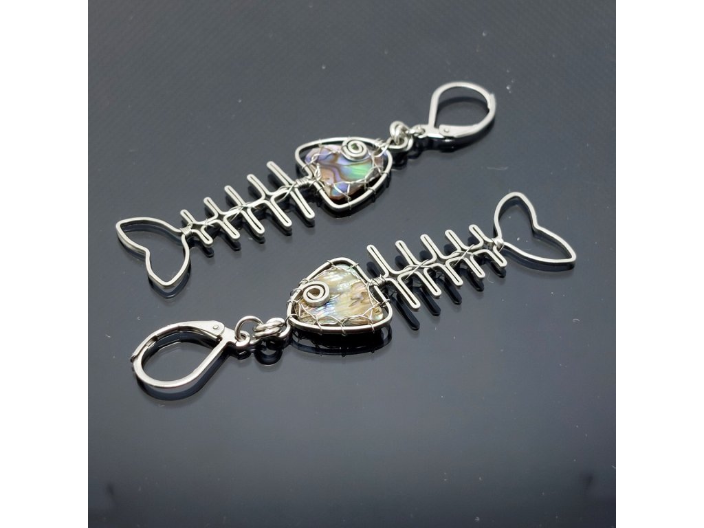 Originální visací náušnice do kterých je drátkem z chirurg.oceli vpletená perleť Paua .