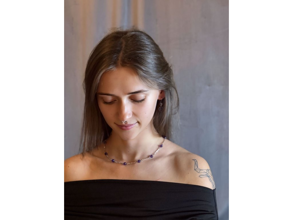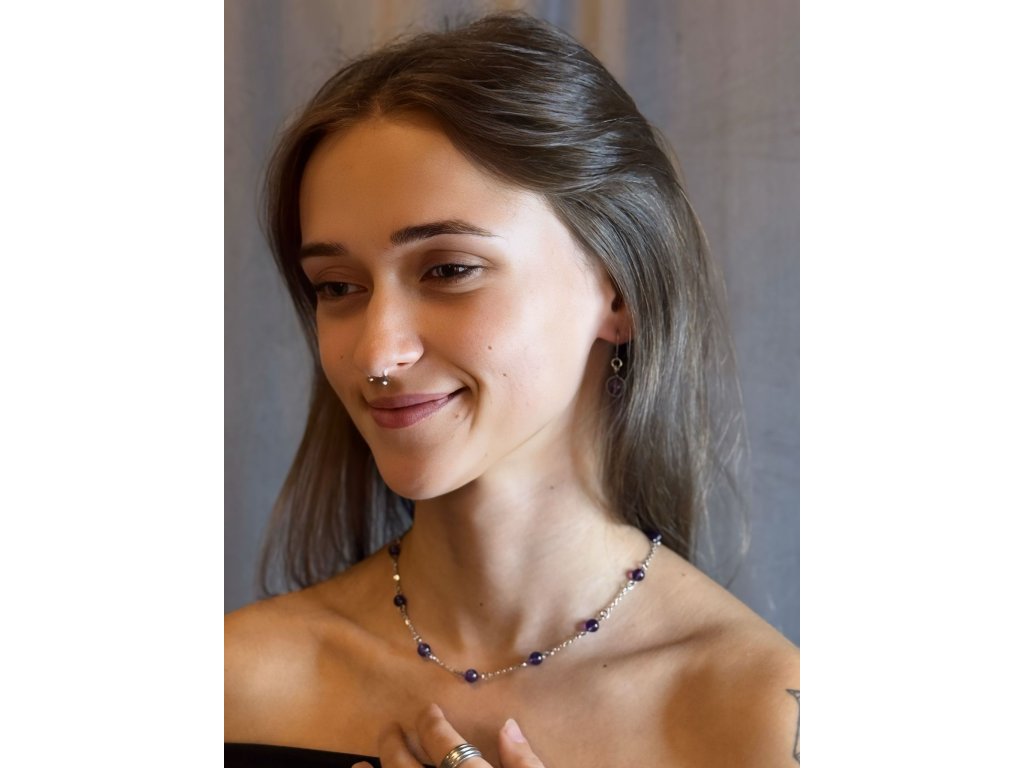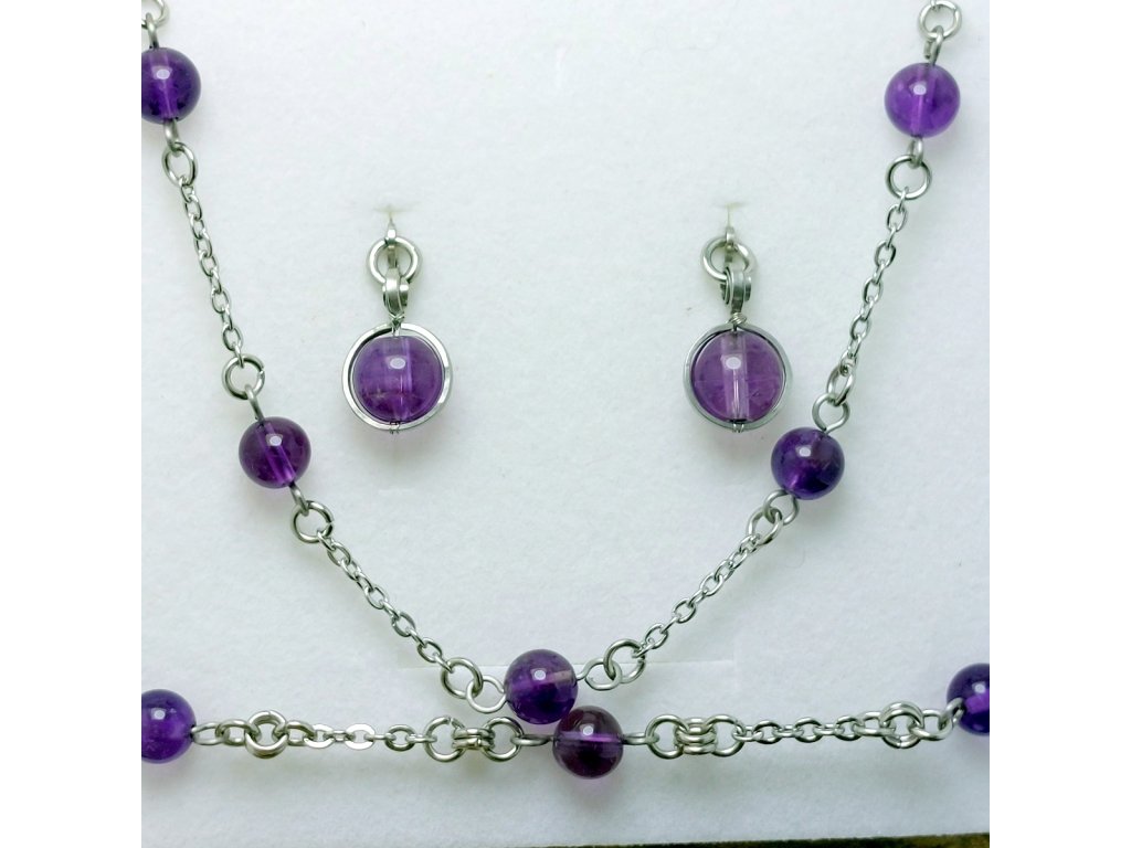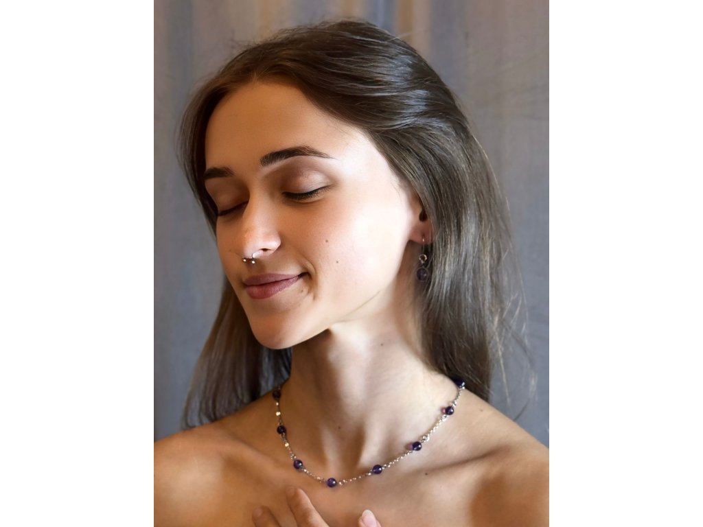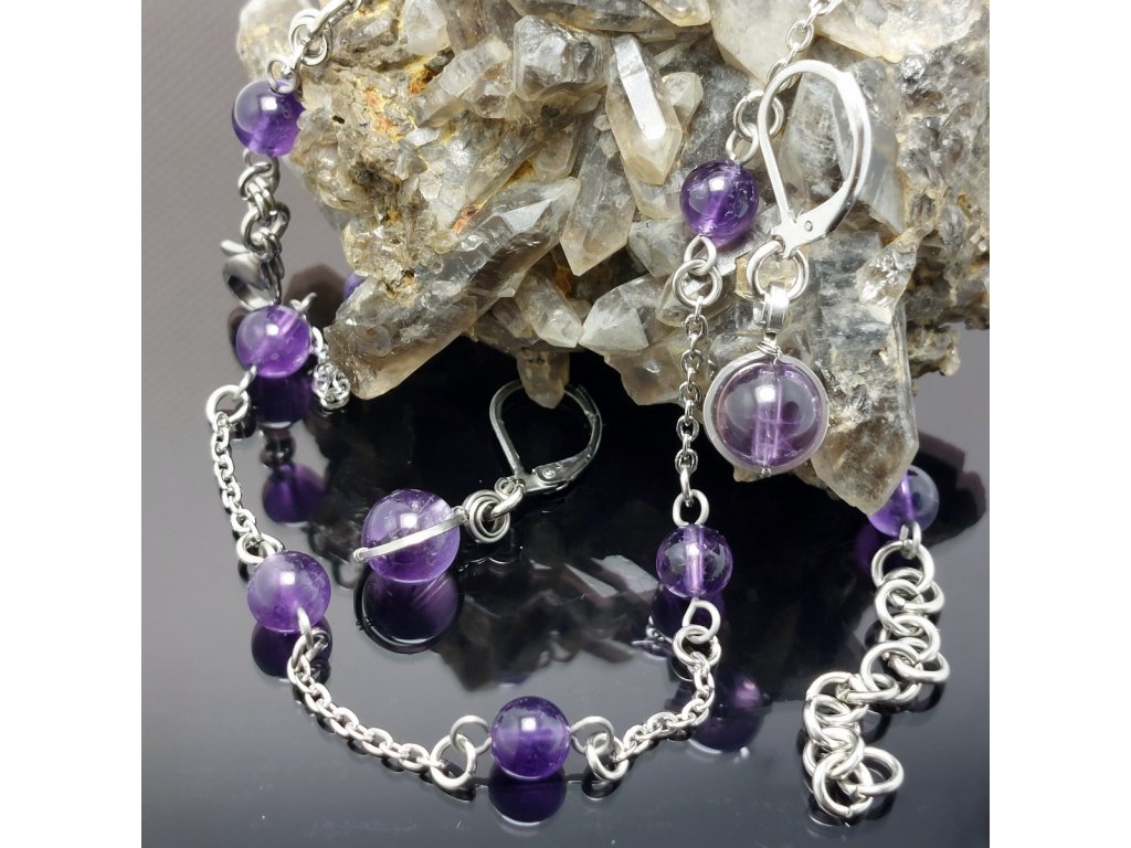 Souprava náhrdelníku, řetízku a náušnic, dokonalá ve své jednoduchosti. Tentokrát s ametysty.
