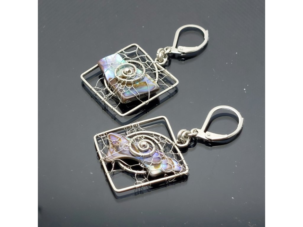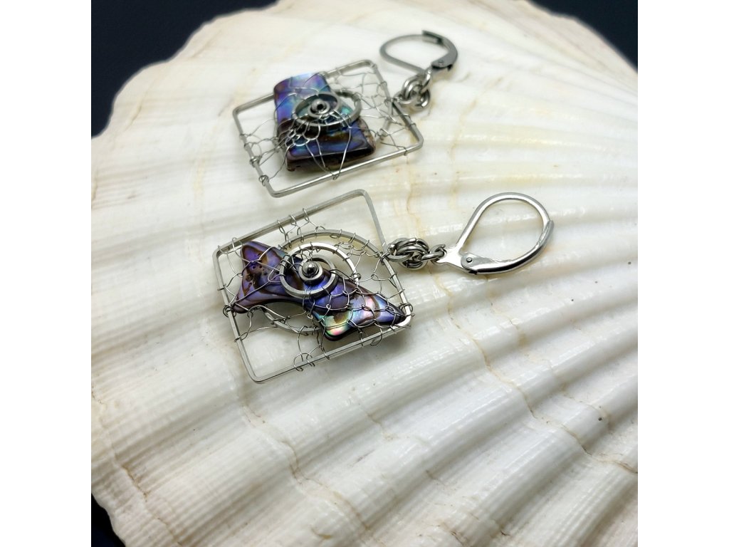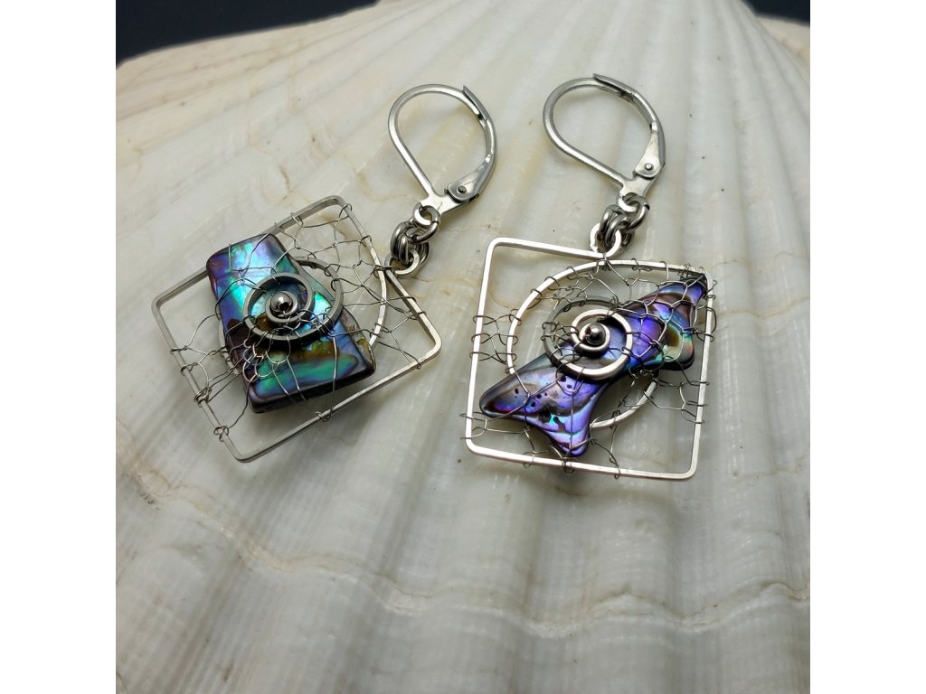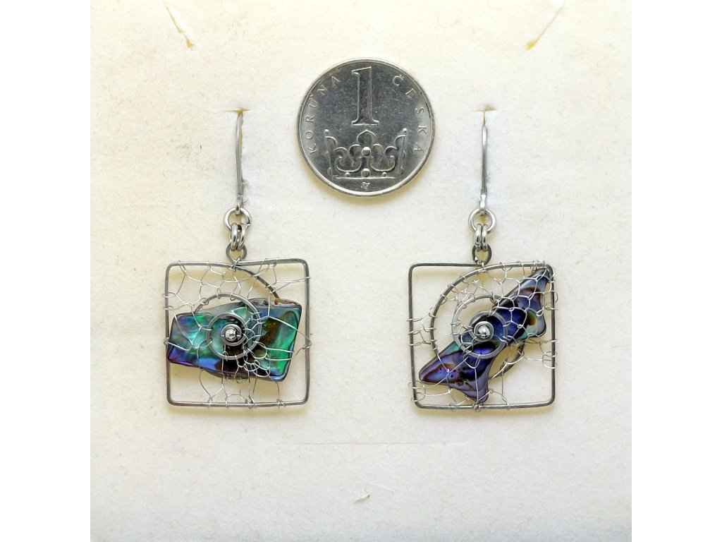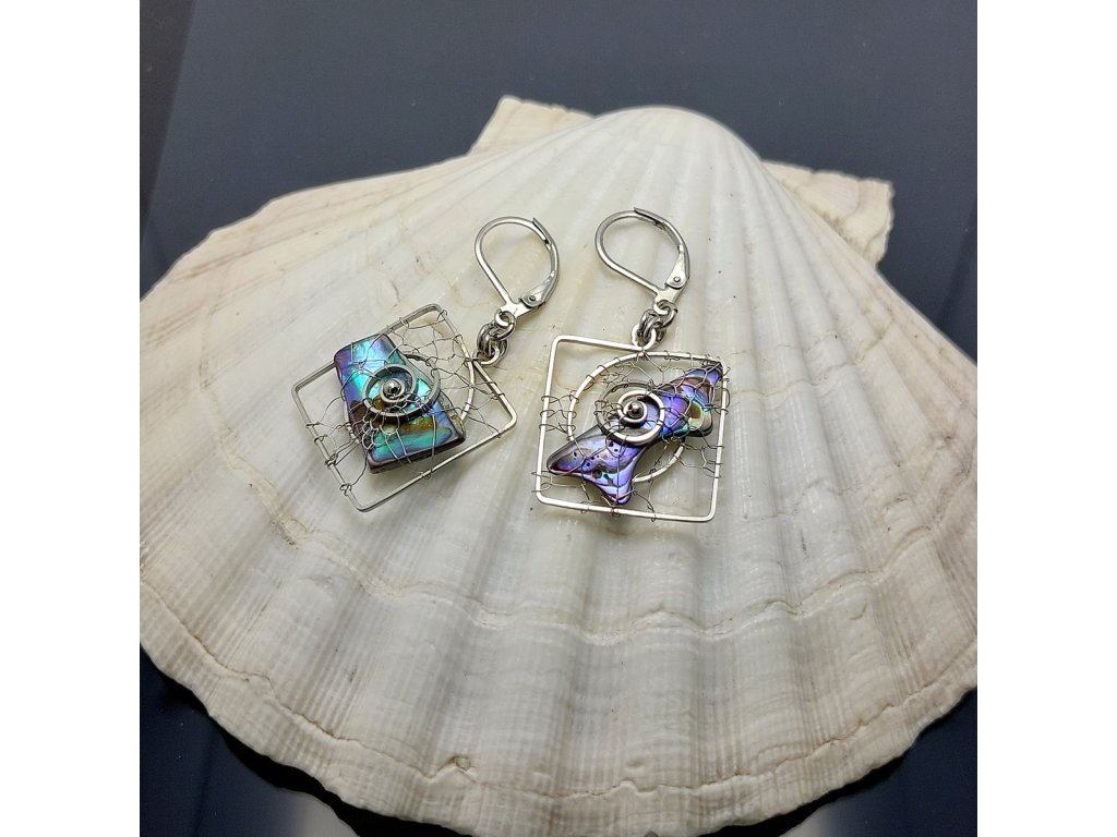 Originální visací náušnice do kterých je drátkem z chirurg.oceli vpletená perleť Paua .